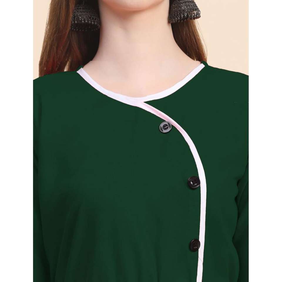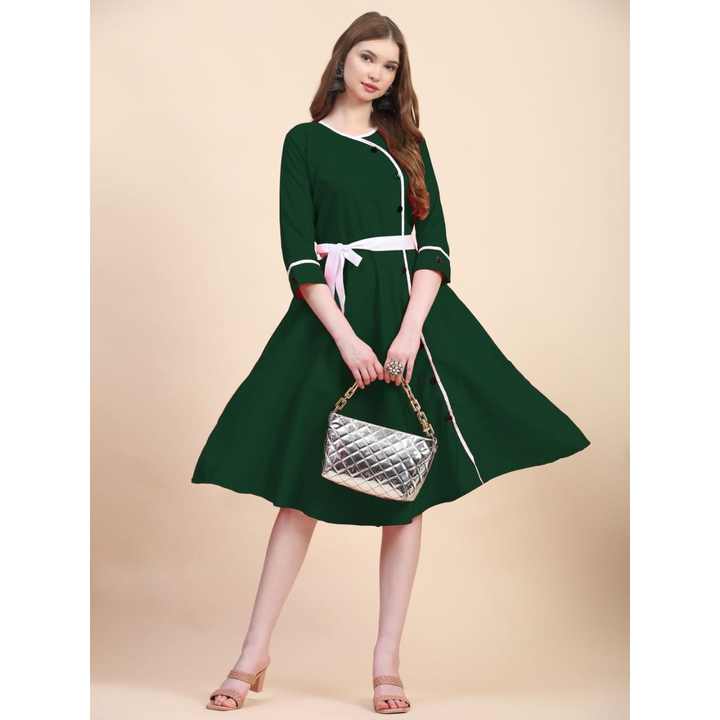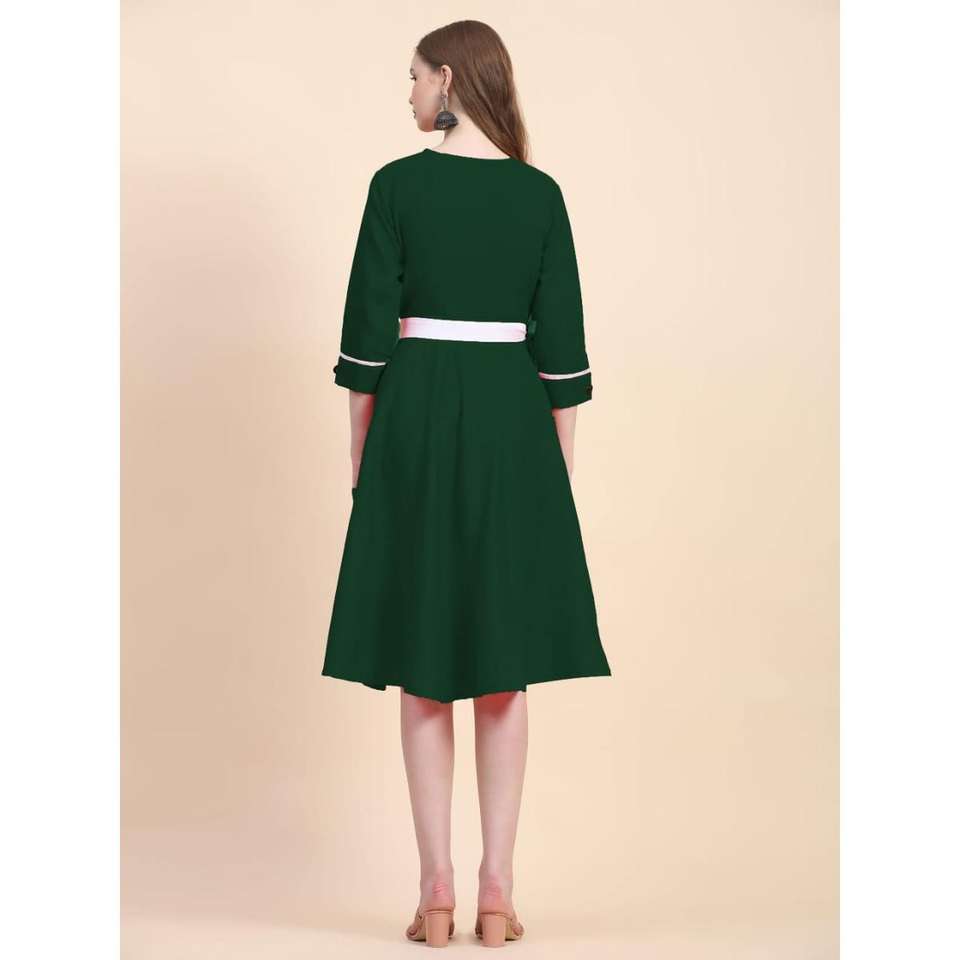 ชุดวันพีซผ้าฝ้ายดีไซเนอร์สีเขียวแบบเรียบง่าย