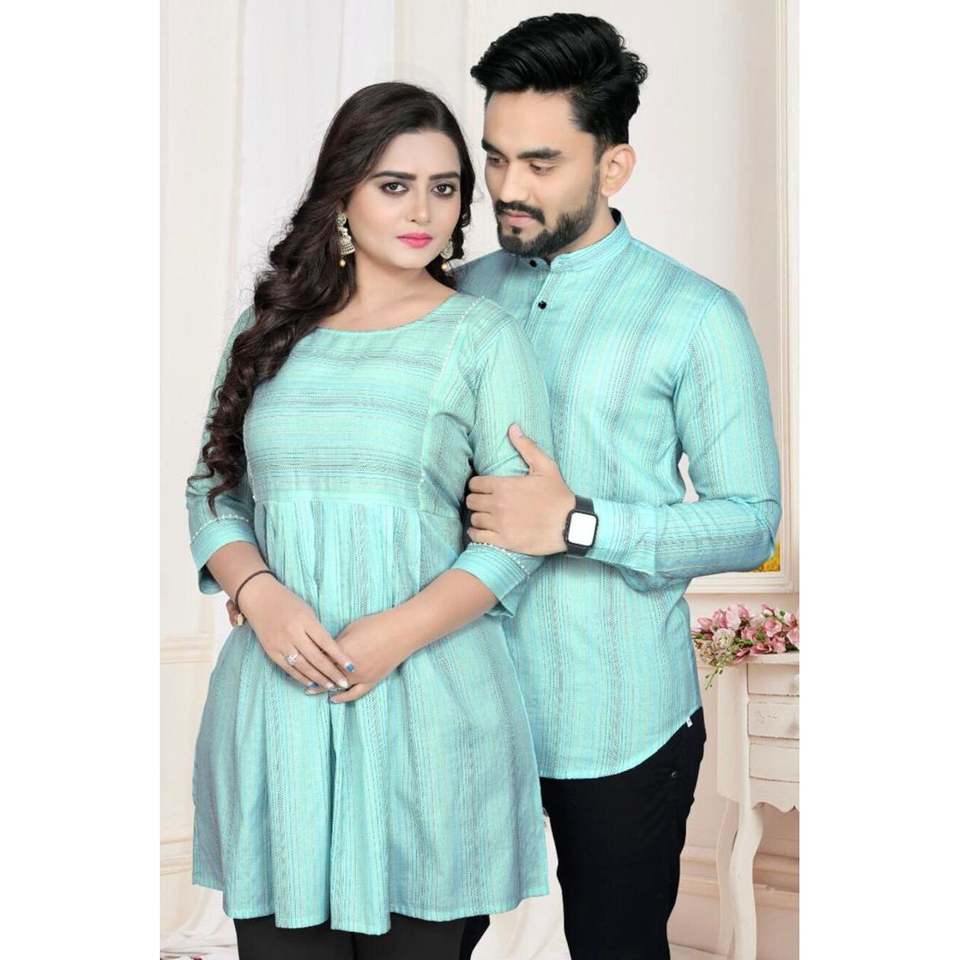 เสื้อเชิ๊ตผู้ชายสำหรับใส่ทำงานผ้าคอตตอนทอจากนักออกแบบและผู้หญิงสีเขียวน้ำทะเล