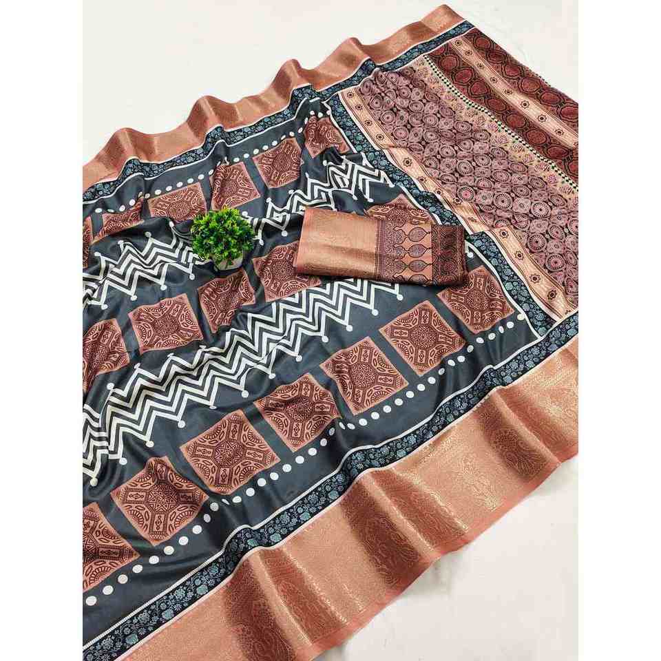 เสื้อ dola Silk พิมพ์ลายดิจิตัล Saree พร้อมด้วยเสื้อ unstitched