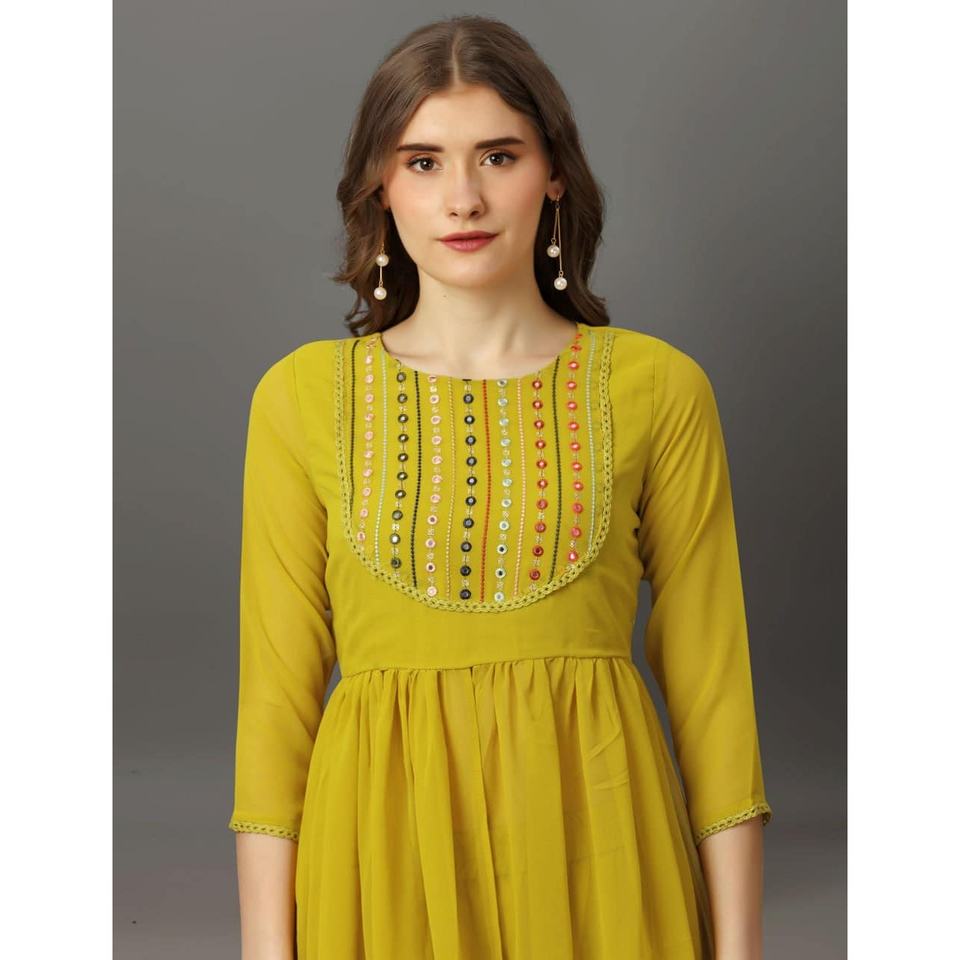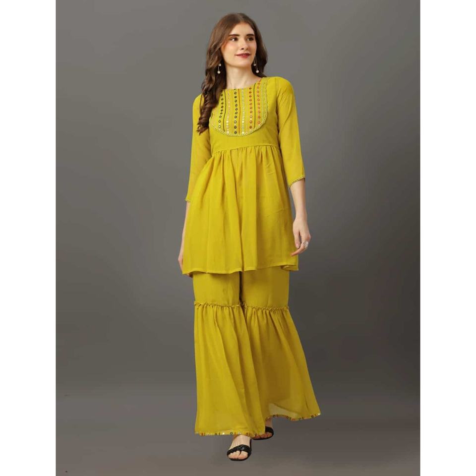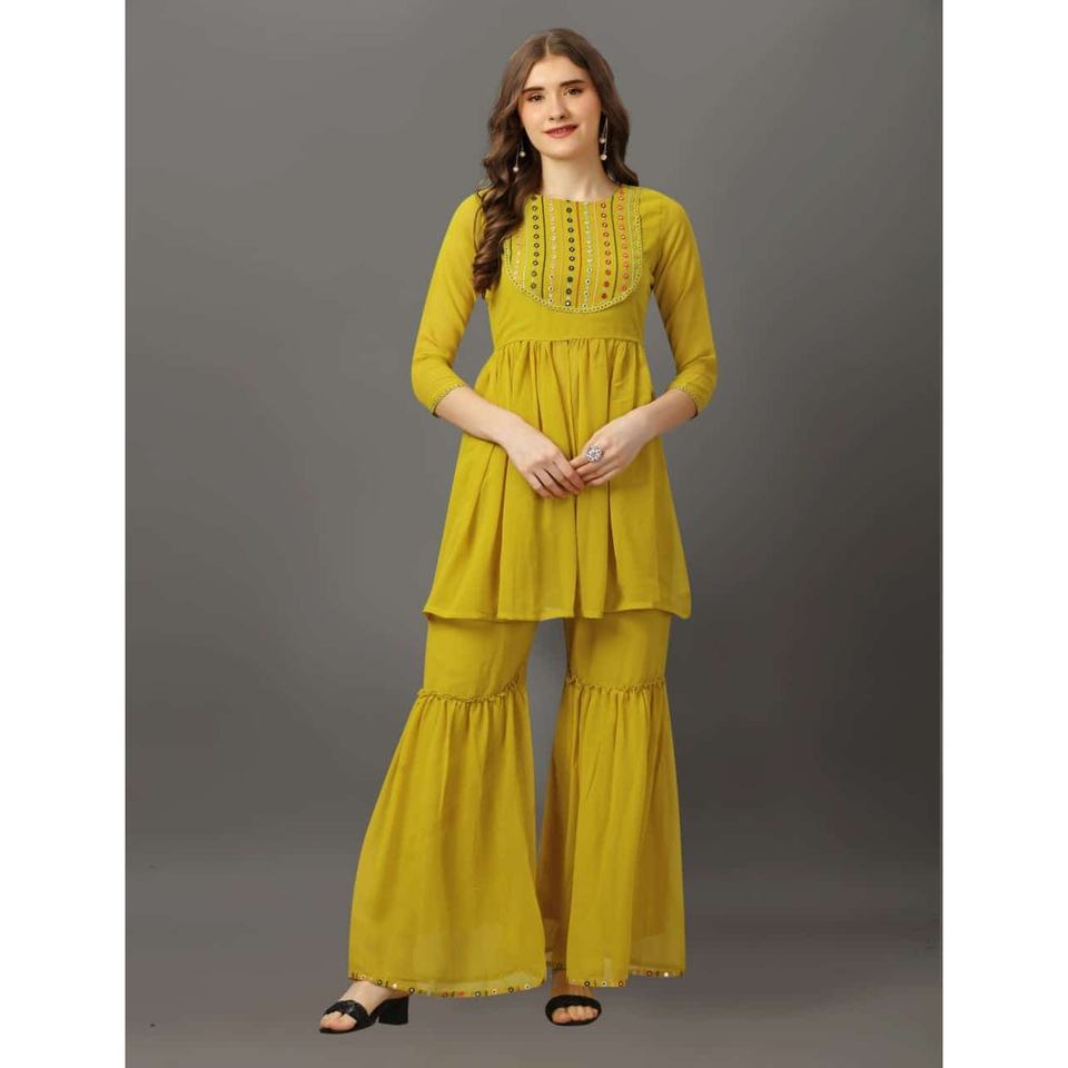 เสื้อทำงานปักลายผ้าจอร์เจียพร้อมชาราร่าสีเหลือง