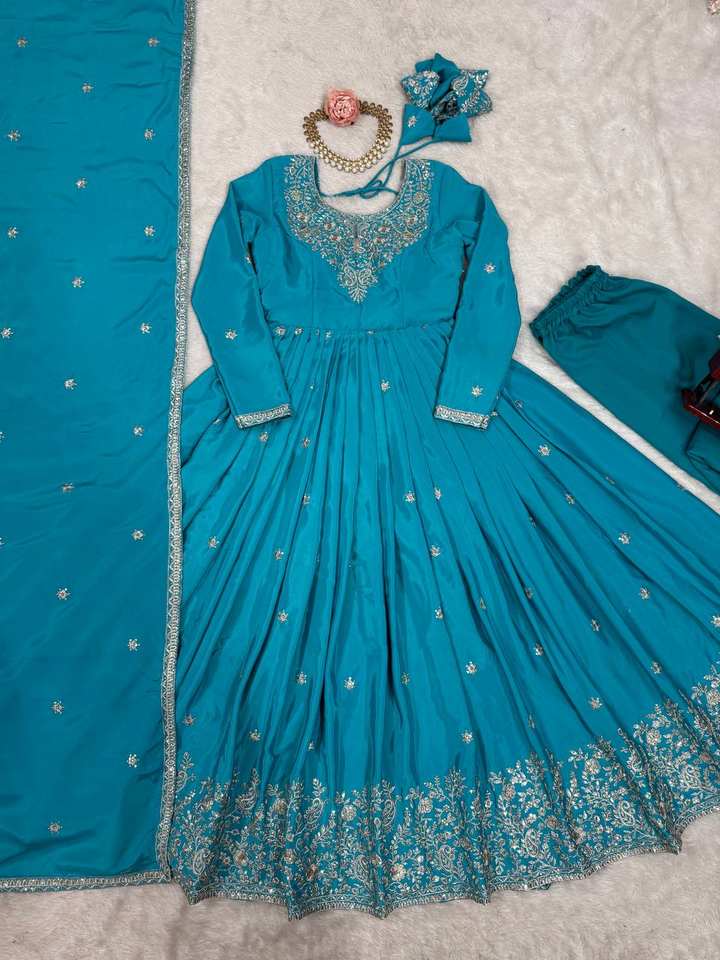ชุดเดรสอนาร์กาลีพร้อมผ้าคลุมไหล่ ปักลายด้วยด้ายแบบซีเควนซ์ ดีไซน์เนอร์จอร์เจตต์ พร้อมกางเกงปิชวาส