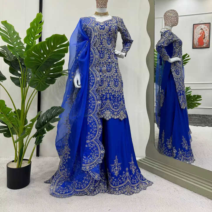 ชุดผ้าคลุมไหล่ดีไซน์เนอร์สไตล์อินเดียตะวันตกสำหรับงานปาร์ตี้ 3 ชิ้น พร้อมงานปักเลื่อม ผ้ากลับด้านได้ แห้งเร็ว ไม่ยับ