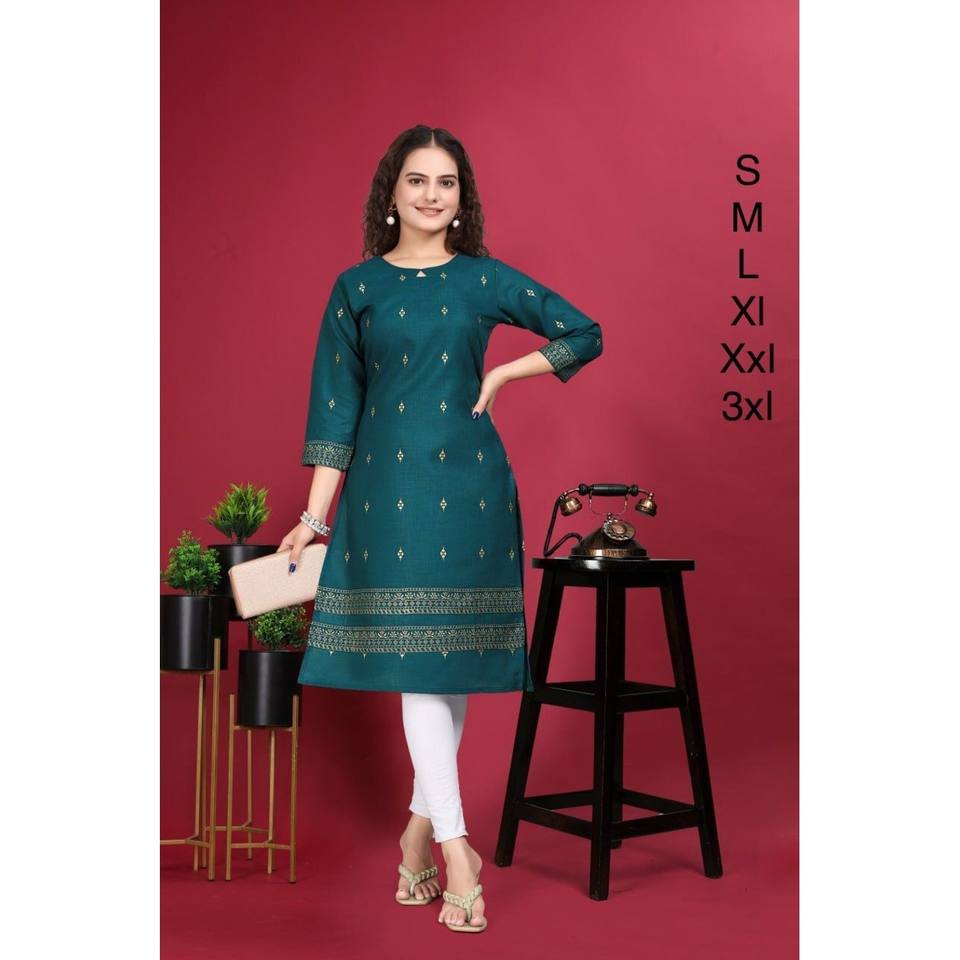 ผ้าฝ้ายพิมพ์ลายเมจิกดีไซน์เนอร์พร้อมใส่ Kurti สีฟ้า