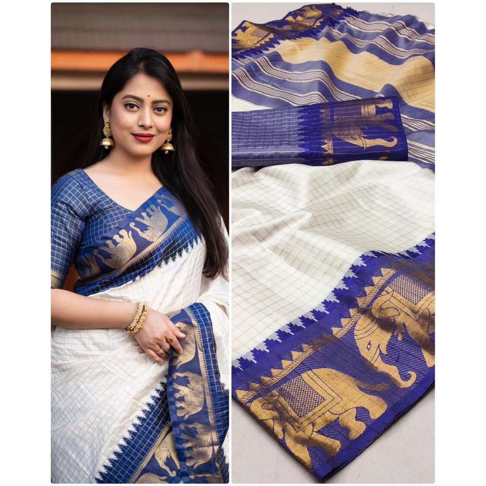 ผ้าทอผ้าแจ็คการ์ด zari ผ้าไหมจากนักออกแบบผ้าคอตตอนสีฟ้า
