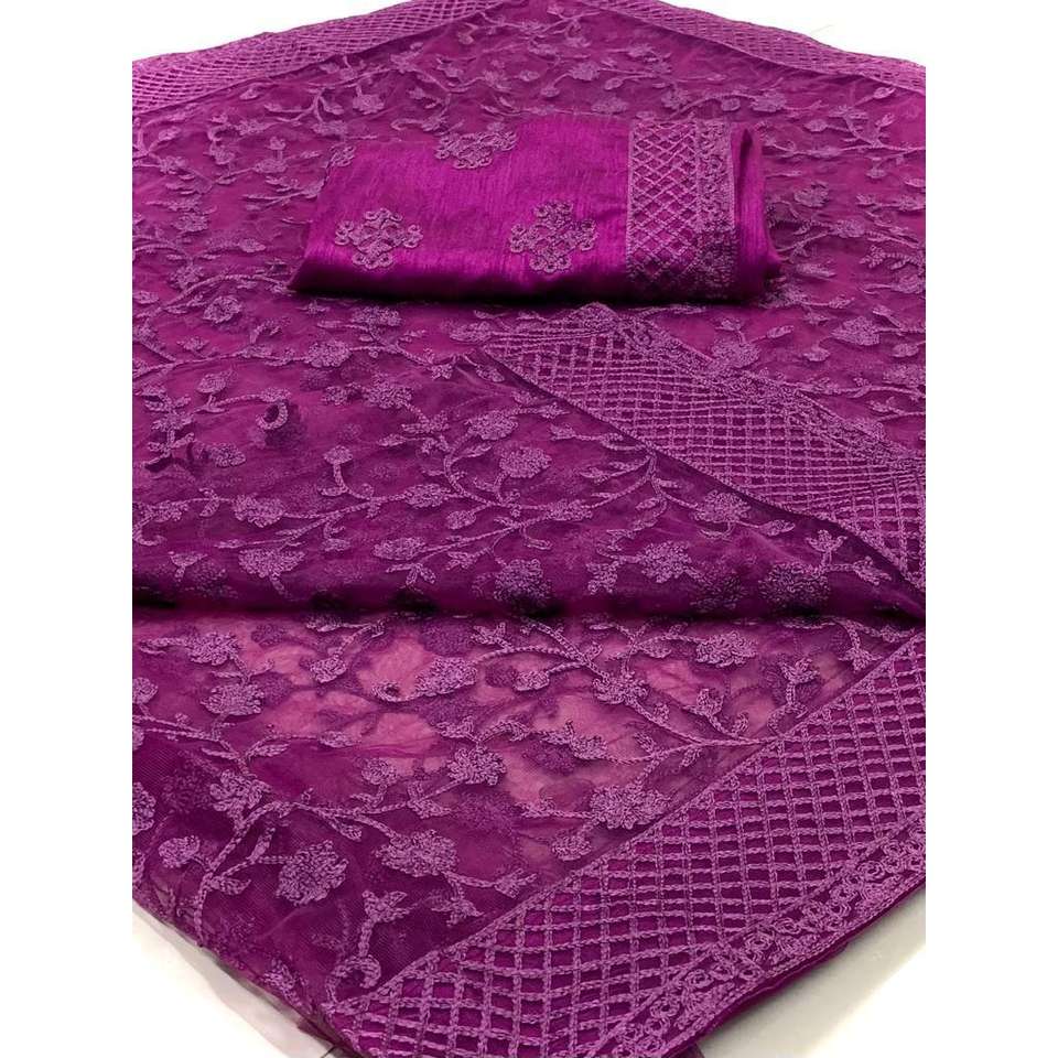 ผ้าส่าหรีสำหรับงานปักตาข่ายสุดเก๋เสื้อเบลาส์สีม่วง