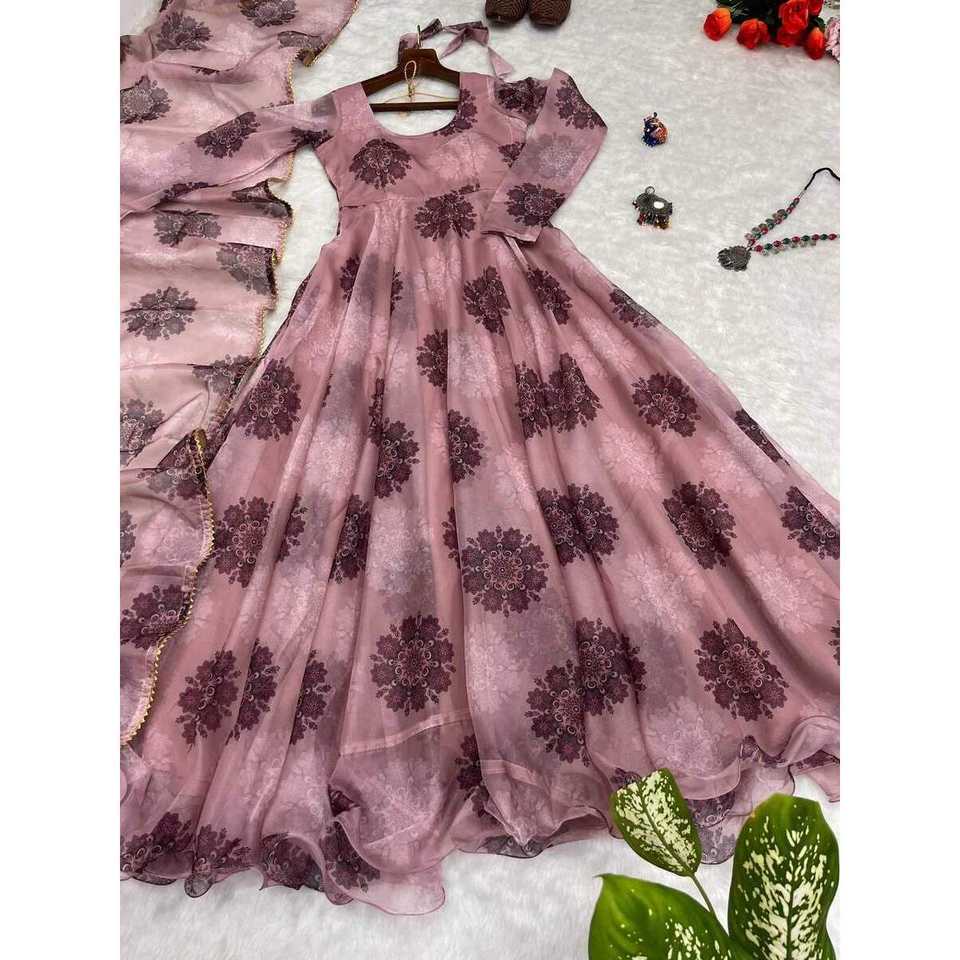 ชุดราตรีผ้าไหมพิมพ์ลายดิจิทัลพร้อมชุดพิมพ์ลาย dupatta Peach ดีไซน์เนอร์