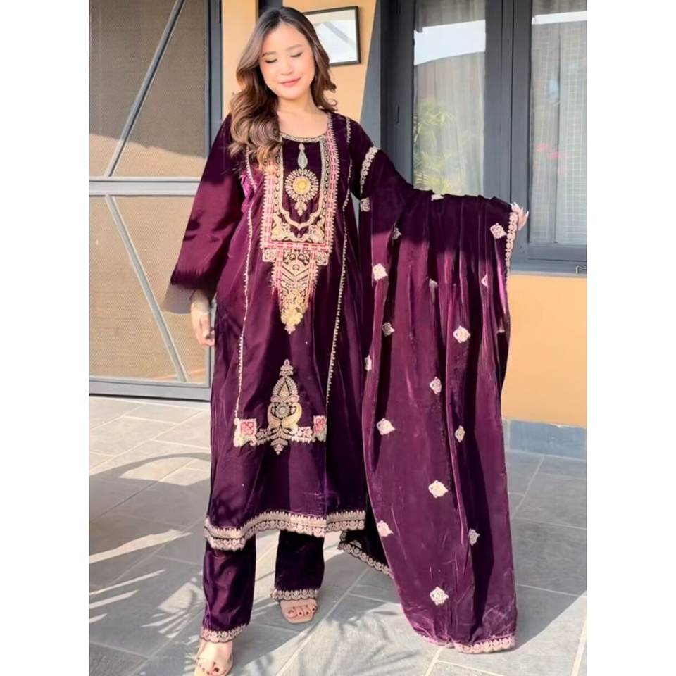 ผ้ากำมะหยี่ปักลวดลายพื้นด้านล่างสำหรับนักออกแบบพร้อมไวน์ dupatta