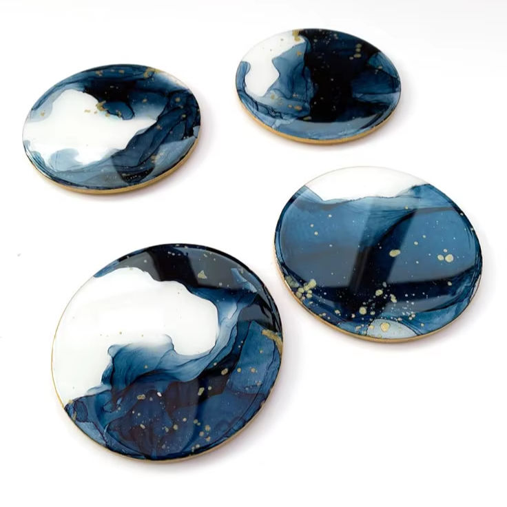 แผ่นรองแก้วเรซินออกแบบทำมือสุดหรูแผ่นสี่เหลี่ยมสีแบบปรับแต่งได้สำหรับชุดโต๊ะเสื่อในครัว