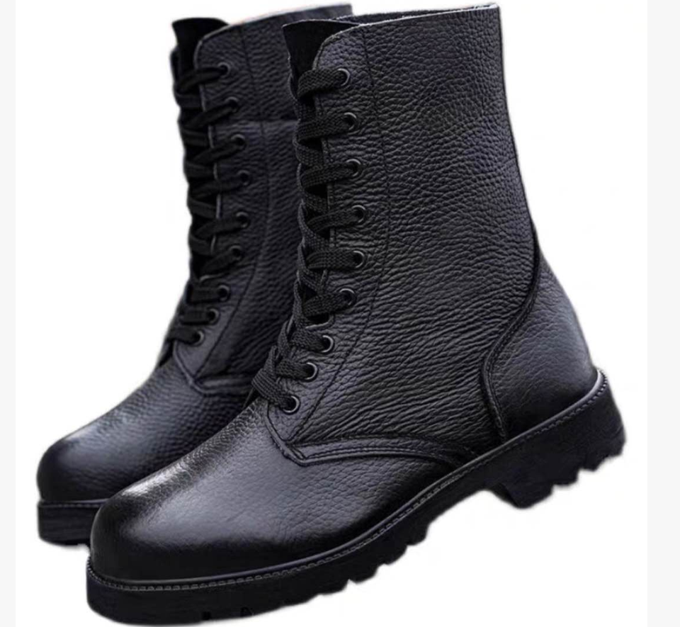 รองเท้าบูทหนัง DF แบบสูง พื้นยาง รองเท้าฝึกซ้อม สวมใส่สบาย ระบายอากาศได้ดี รองเท้านิรภัย รองเท้าคอมแบท