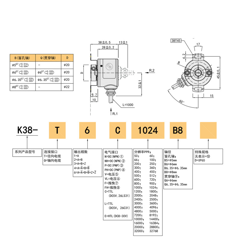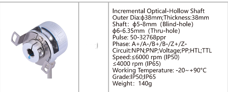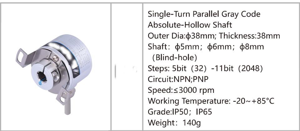 DFE38 ตัวเข้ารหัสแบบแกนกลวงชนิด Gray Code แบบ Single-Turn Parallel ขนาดภายนอก 38 มม. แบบกำหนดเองได้