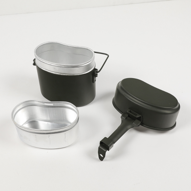 DFM1104 ชุดอุปกรณ์ทำอาหารสนามอลูมิเนียมสำหรับงานกลางแจ้ง พร้อมฝาปิด ชาม หม้อ 3 ชิ้นในชุดเดียว