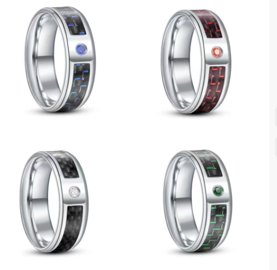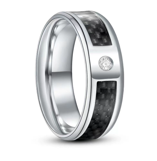 แหวนแต่งงานผู้ชาย DFR03 สีดำล้วน ดีไซน์เรียบง่าย ทนทาน วัสดุทังสเตนคาร์ไบด์ ประดับคาร์บอนไฟเบอร์