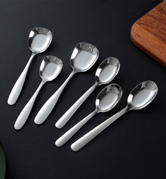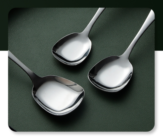 ช้อนสแตนเลสสตีลทรงสี่เหลี่ยม DFS01 S M L สำหรับเด็ก ช้อนตักอาหารที่บ้าน ช้อนซุปหัวเหลี่ยม รับทำโลโก้ตามสั่ง