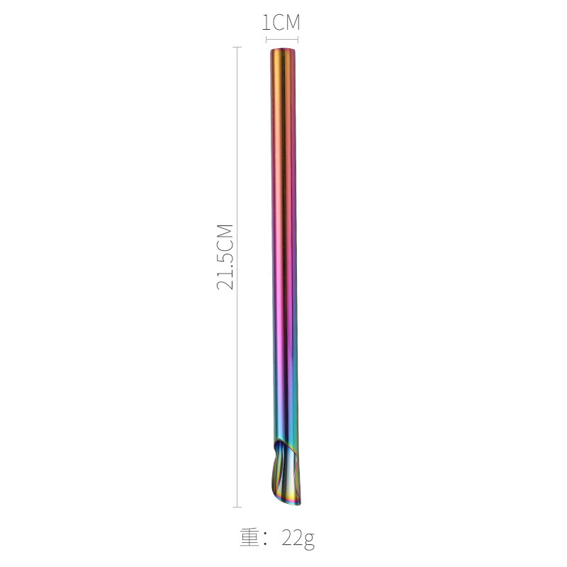 หลอดดูดน้ำพร้อมช้อนสแตนเลส DFS0322 แบบสองในหนึ่ง ใช้ซ้ำได้ ช้อนคนเครื่องดื่ม ปากกว้าง 0.4 นิ้ว หลอดดูดสมูทตี้ สำหรับใช้ในครัว