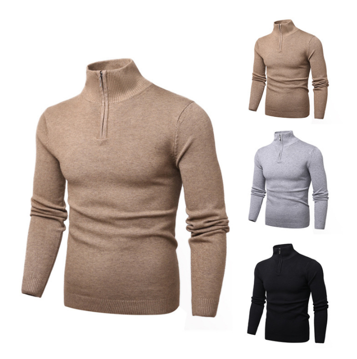 เสื้อสเวตเตอร์ผู้ชายแบรนด์ใหม่ DFS821 Desret สีน้ำตาลขี้ม้า คอทรงโอ ลายถักสีเทา คอตั้งพร้อมซิป