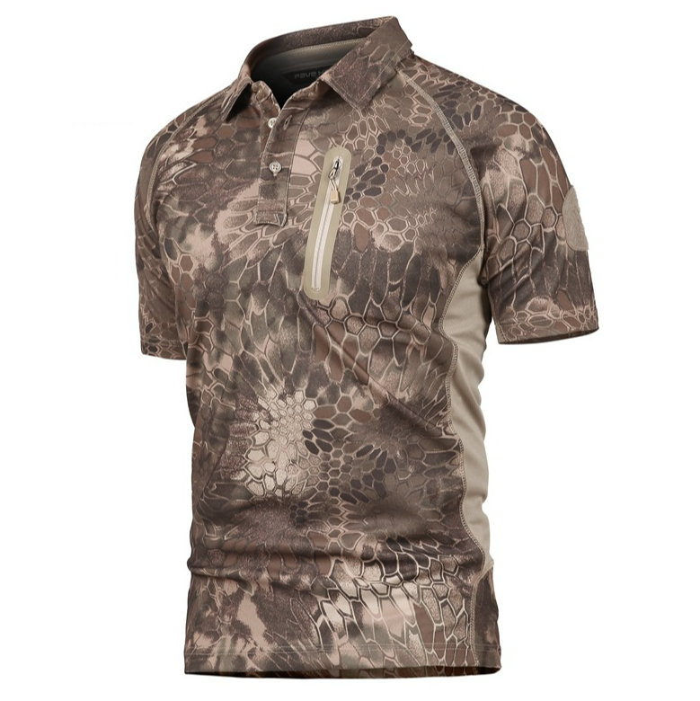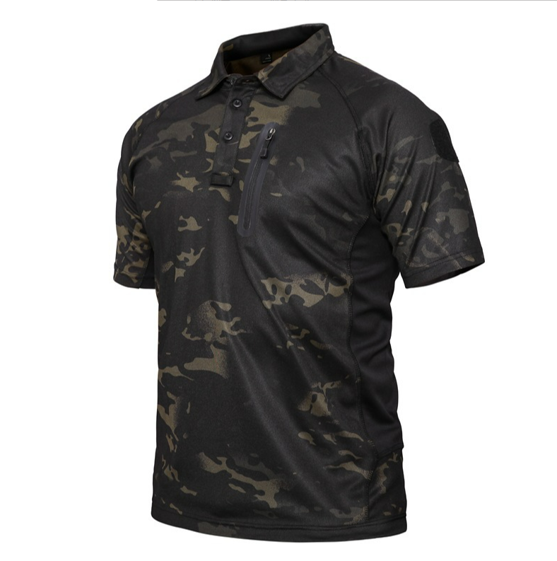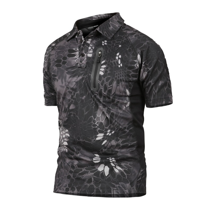 เสื้อโปโลแขนสั้นลายพรางงูหลามสีน้ำเงินเขียวดำ CP รุ่น DFT104 พร้อมกางเกงขาสั้นลายพราง