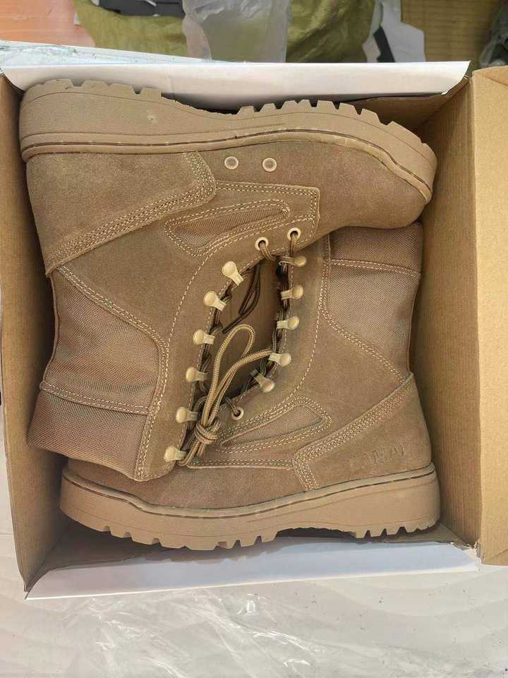 รองเท้าบูทยุทธวิธีโคโยตี้ DFT123ลามายสีน้ำตาลเข้มพร้อมพื้นรองเท้าทำจากยางอุปกรณ์เสริม