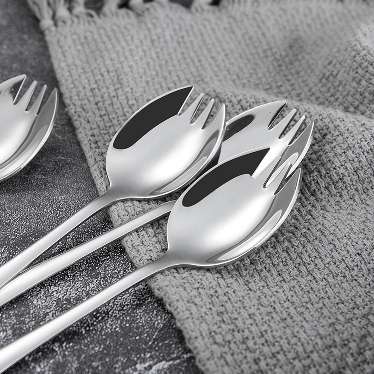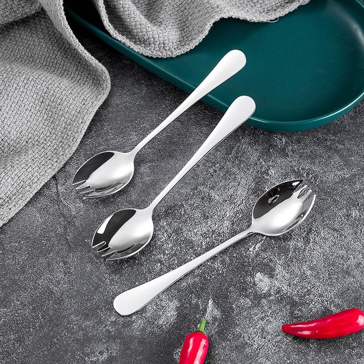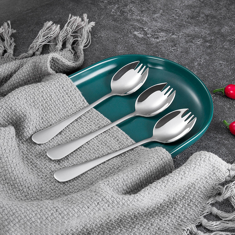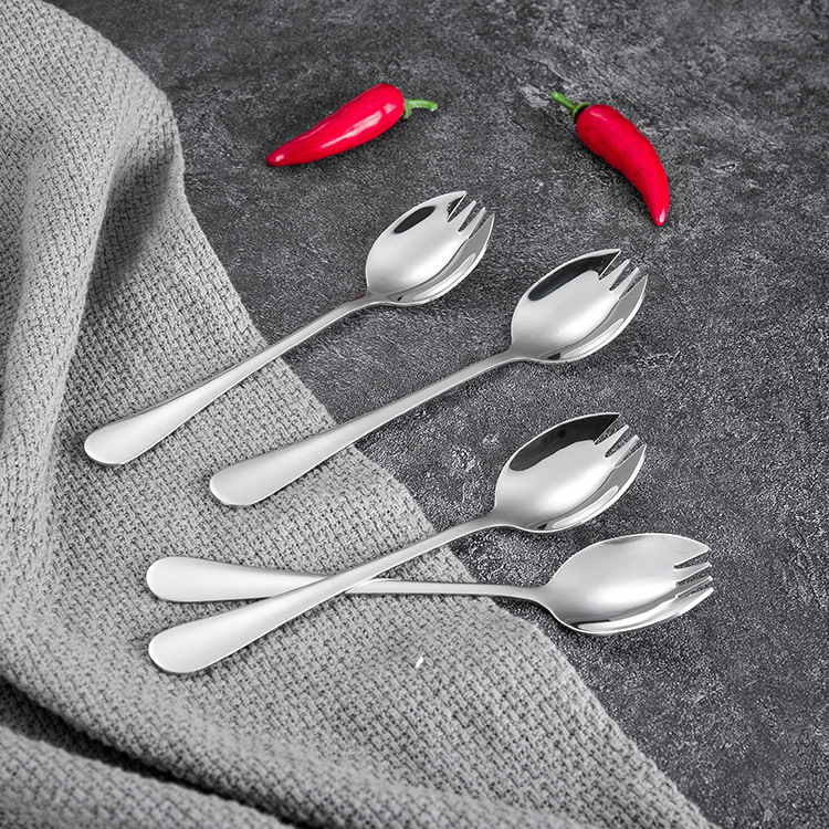 ช้อนส้อมพกพา DFU125 แบบสั่งทำขายส่งจำนวนมาก ใช้ซ้ำได้ 2 in 1 สำหรับแคมป์ปิ้ง คุณภาพสูง ผลิตจากสแตนเลส SUS 410 304