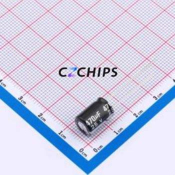 ตัวเก็บประจุแบบอิเล็กโทรไลต์อะลูมิเนียมแบบ Through-Hole รุ่น DGA025M477G123S1AA ขนาด D8xL12 มม. ความจุ 470uF 20% 25V 382mA-120Hz
