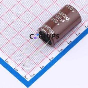 ตัวเก็บประจุแบบอิเล็กโทรไลต์อะลูมิเนียมแบบ Through-Hole รุ่น DGE450M107N302S1AA ขนาด D18xL30 มม. 100uF 20% 450V 7.5 มม.
