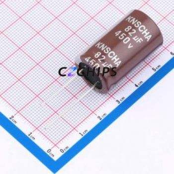 ตัวเก็บประจุแบบอิเล็กโทรไลต์อะลูมิเนียมแบบ Through-Hole รุ่น DGE450M826N322S1AA ขนาด D18xL32 มม. 82uF 20% 450V 7.5 มม.