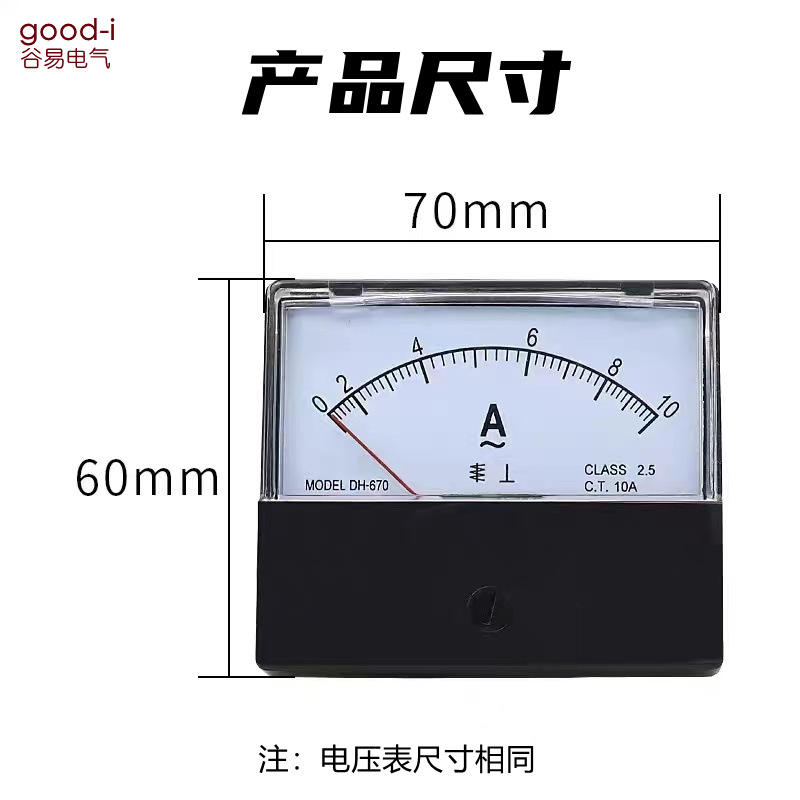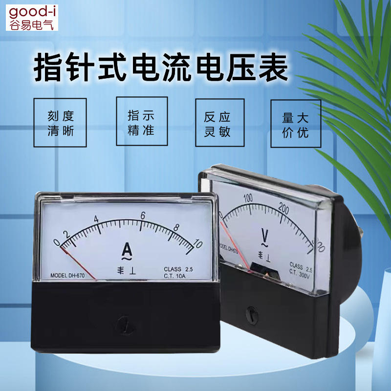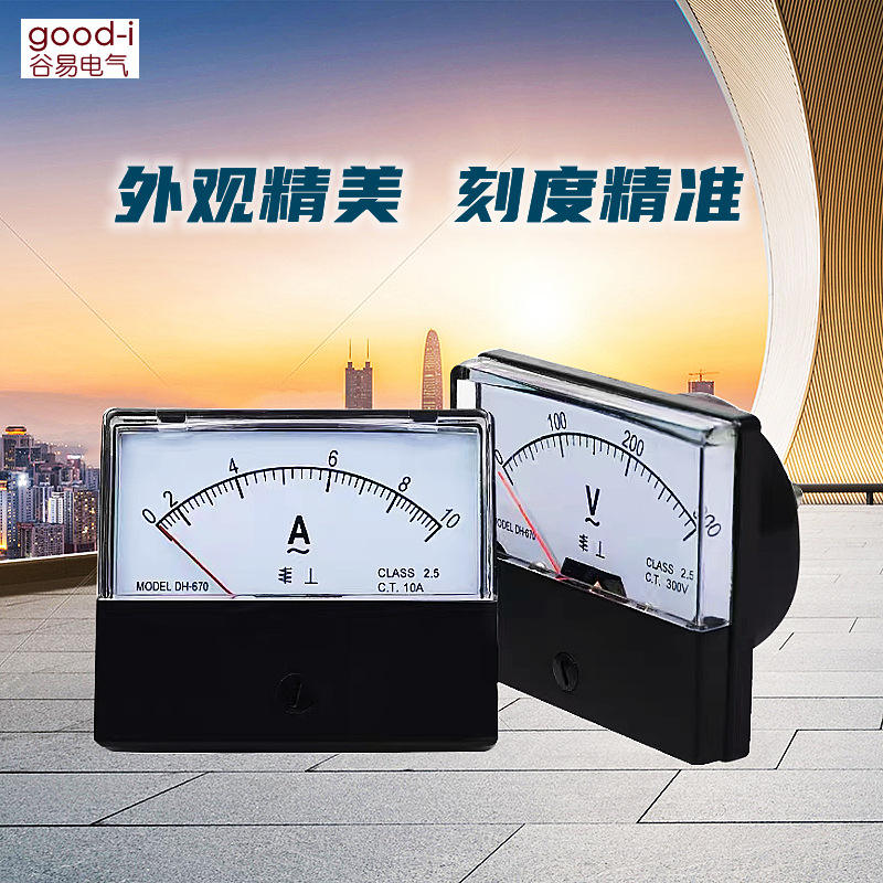 DH-670แผงมิเตอร์เดี่ยว AC แอมป์มิเตอร์และโวลต์มิเตอร์หัวพร้อมตัวชี้10A 20A ความจุ100/5 450/5