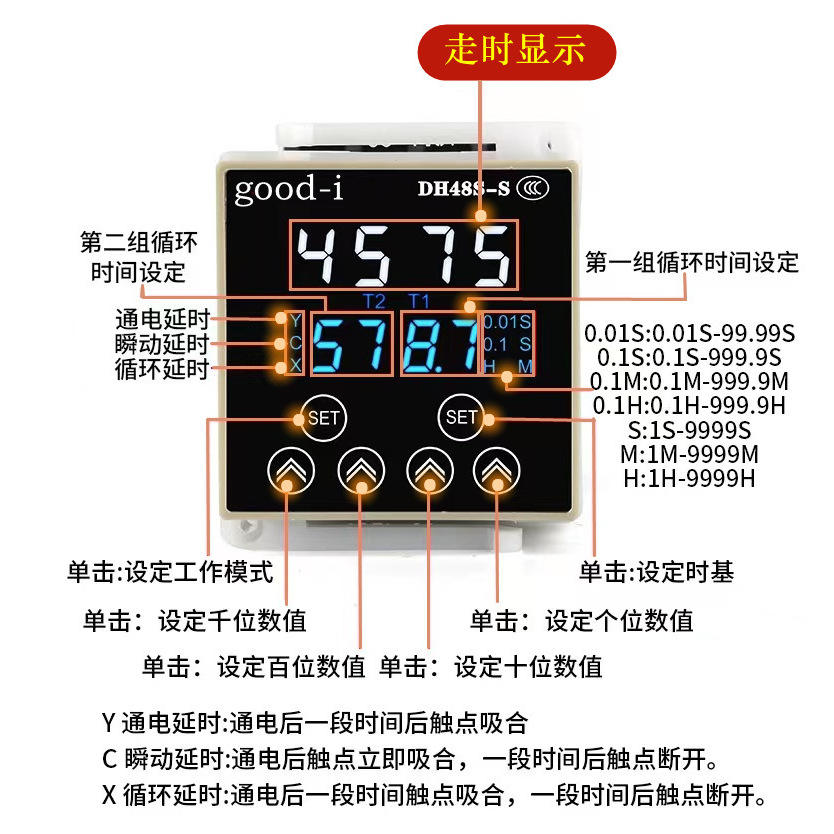 รีเลย์ควบคุมเวลาแบบดิจิตอล DH48S-S 220V/23V รีเลย์อัจฉริยะแบบวนซ้ำไม่จำกัด