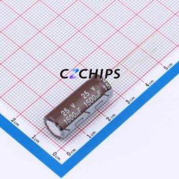 ตัวเก็บประจุอิเล็กโทรไลต์อะลูมิเนียมแบบ Through-Hole รุ่น DHG025M158H250S1AA ขนาด D10xL25 มม. 1500uF 20% 25V 2.23A-100kHz