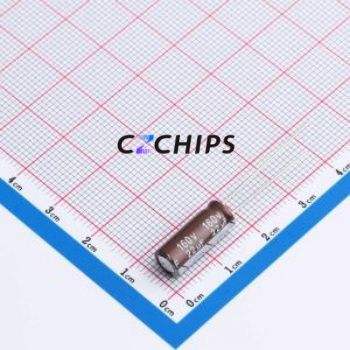 ตัวเก็บประจุอิเล็กโทรไลต์อะลูมิเนียมแบบ Through-Hole รุ่น DHG160M226E150S1AA ขนาด D6.3xL15 มม. 22uF 20% 160V 450mA-100kHz