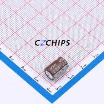 ตัวเก็บประจุอิเล็กโทรไลต์อะลูมิเนียมแบบ Through-Hole รุ่น DHG450M225G120S1AA ขนาด D8xL12 มม. 2.2uF 20% 450V 230mA-100kHz