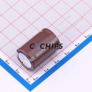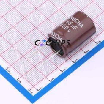 ตัวเก็บประจุอิเล็กโทรไลต์อะลูมิเนียมแบบ Through-Hole รุ่น DHG450M566N250S1AA ขนาด D18xL25 มม. 56uF 20% 450V 1.2A-100kHz