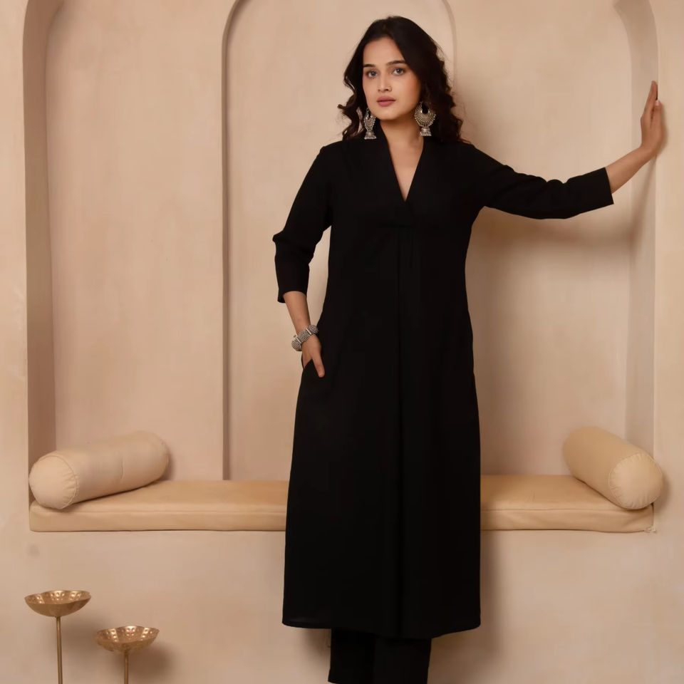 Dhoop chaav Sama ชุด anarkali ผ้าฝ้ายสีดำทำด้วยมือเรียบง่ายเป็นมิตรกับสิ่งแวดล้อมดีไซน์เรียบง่ายสำหรับลำลองทุกวันฤดูใบไม้ผลิฤดูร้อนฤดูใบไม้ร่วง