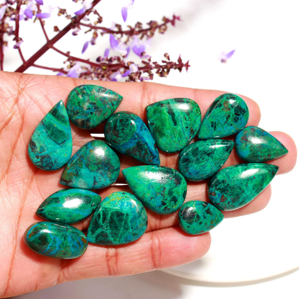 จี้คริสโคลาธรรมชาติ DHORGEMS รูปทรงคาโบชองสีเขียว อัญมณีทำมือสำหรับทำเครื่องประดับ อัญมณีหลวมจำนวนมากจากราชสถาน