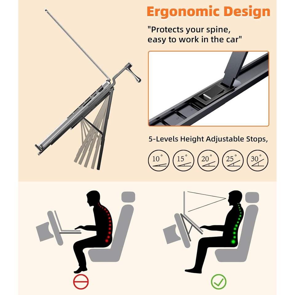 แท่นวางแล็ปท็อปในรถยนต์แบบปรับความสูงได้ น้ำหนักเบา ผลิตจากอะลูมิเนียมสีเทาเมทัลลิก ขัดเงา ใช้เป็นโต๊ะวางของบนพวงมาลัยได้