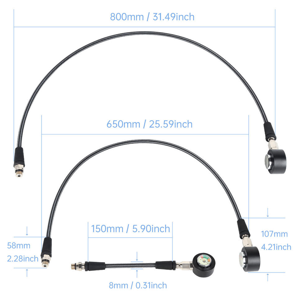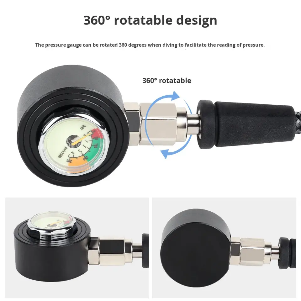 เกจวัดแรงดันตกค้างสำหรับดำน้ำ DIDEEP สายถักคาร์บอนไฟเบอร์ ใช้ได้กับเรกกูเลเตอร์ BCD ท่อแรงดันสูง - ปรับแต่งได้