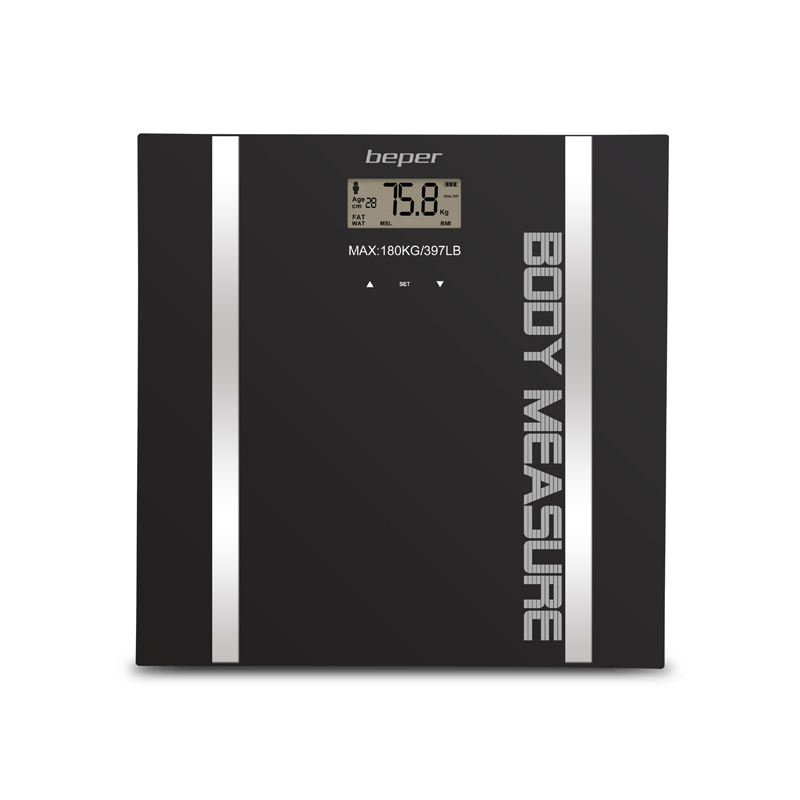เครื่องชั่งน้ำหนักดิจิตอลแบบกระจกนิรภัย ขนาด 30x30x1.7 ซม. สีดำ/เงิน