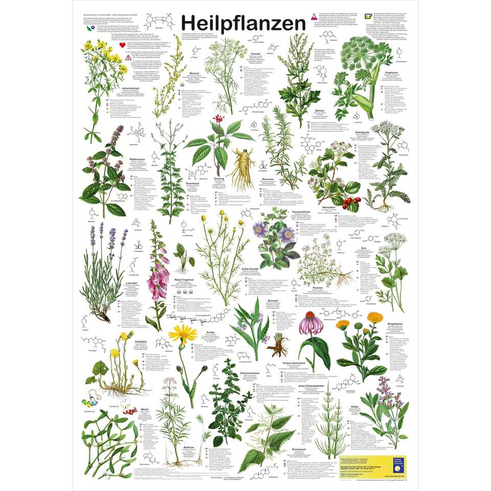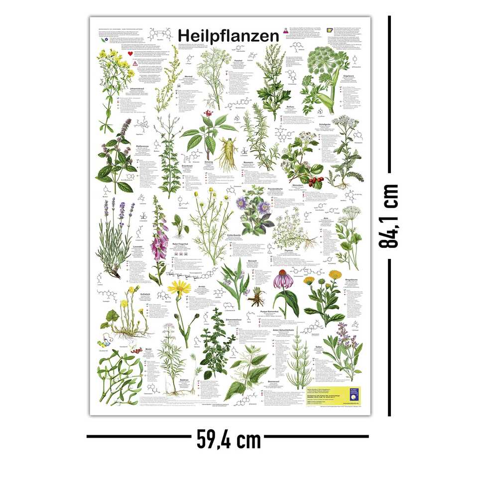 โปสเตอร์พืชสมุนไพรเยอรมัน DIN A1 สำหรับตกแต่งผนัง