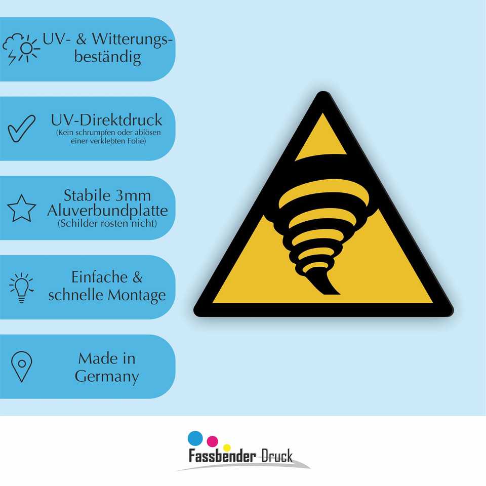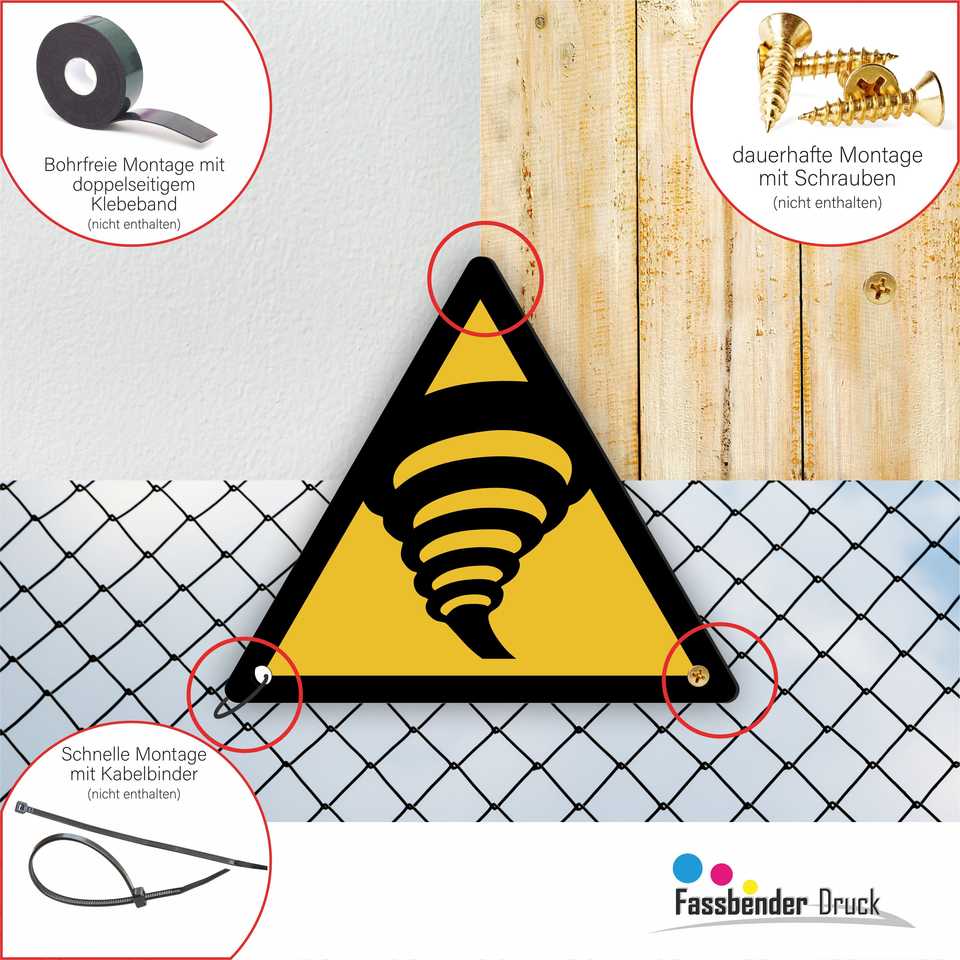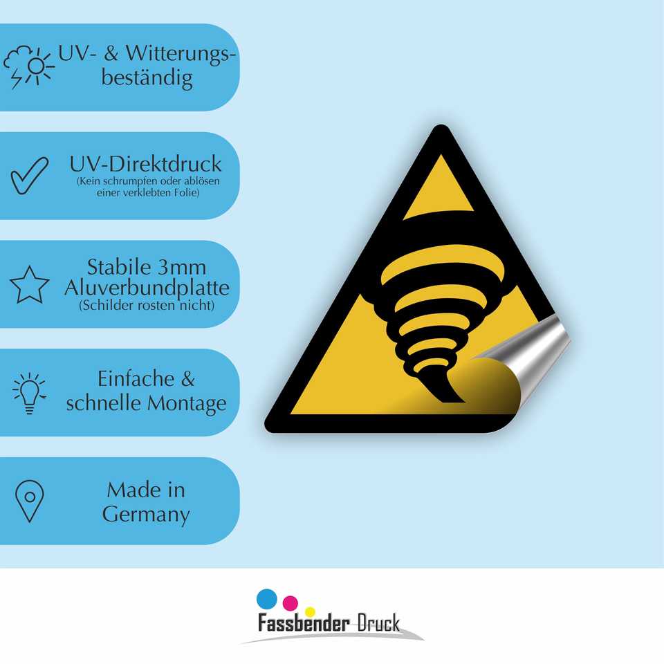 DIN EN ISO 7010 Compliant Reflective Traffic Sign W074 Steel Street Sign Warning of Tornado Area for Roadway Use