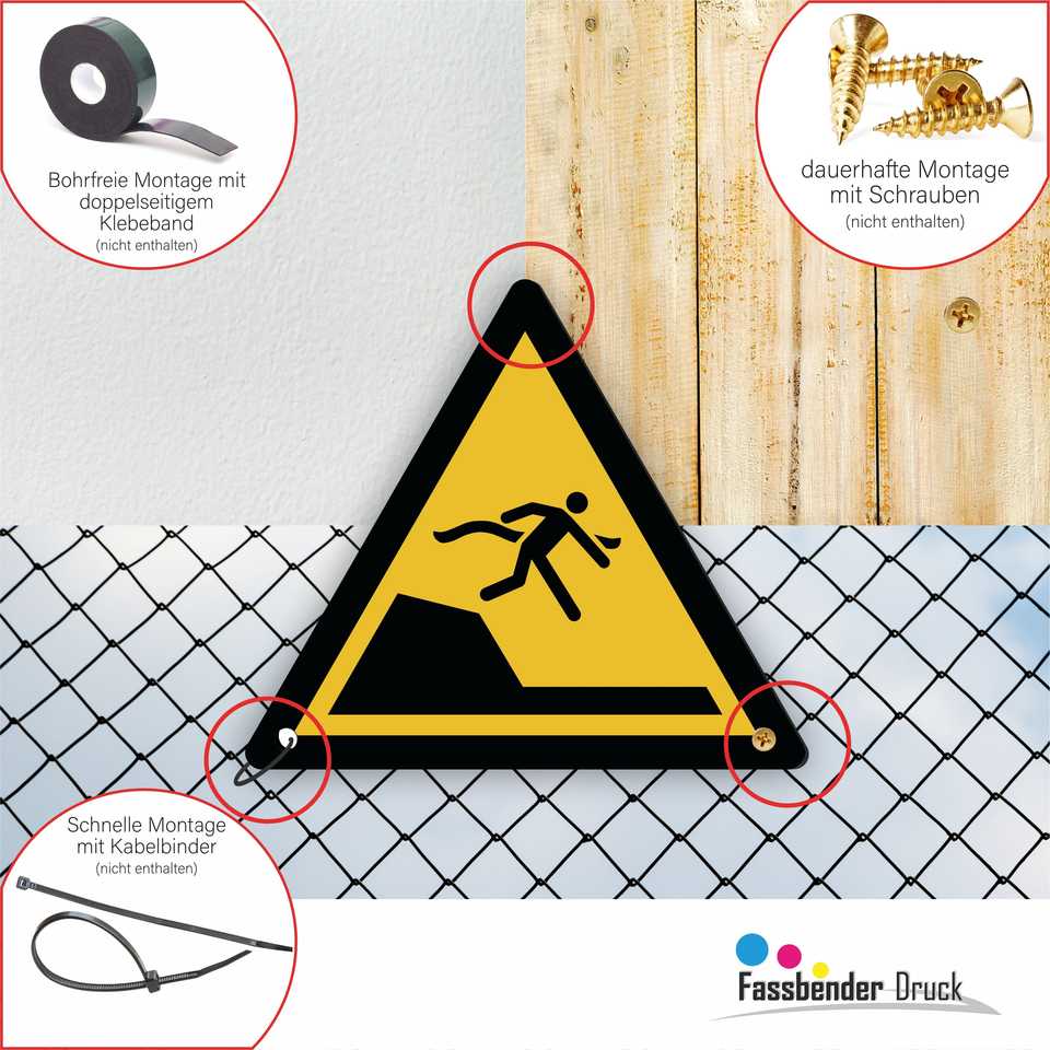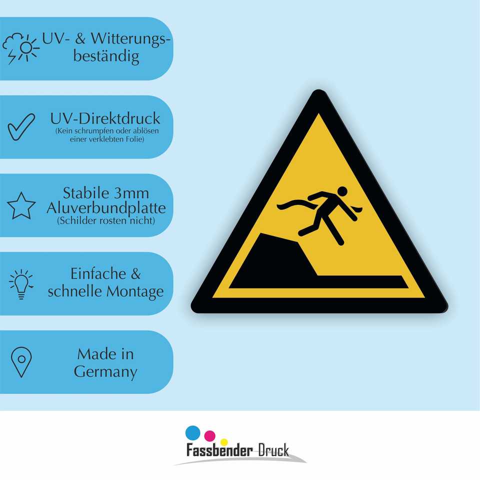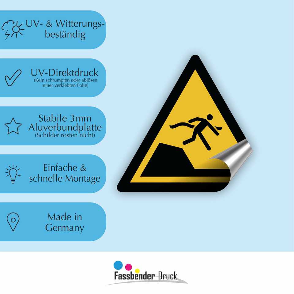 DIN EN ISO 7010 Compliant W050 Warning Sign for Sudden Depth Changes in Swimming or Leisure Pools for Roadway Usage