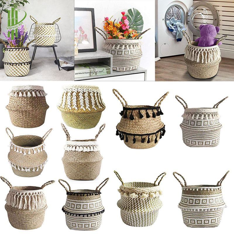 ตะกร้าสานใส่ของหญ้าทะเลเป็นมิตรกับสิ่งแวดล้อมสำหรับห้องรับประทานอาหารกระถางดอกไม้และตะกร้าอาหารผลไม้