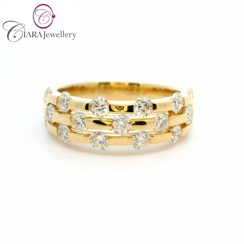 แหวนค็อกเทลประดับเพชรสีเหลืองทอง18K แบบคลาสสิกหรูหรา
