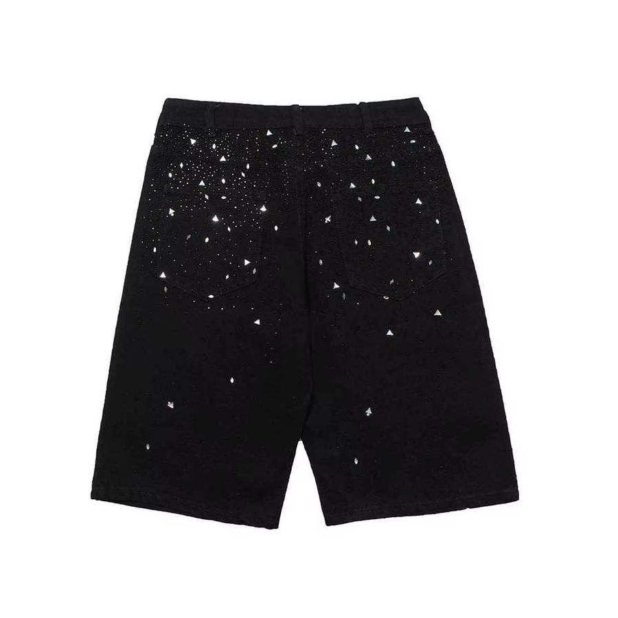 DISCOVER-IMPEX 2026 Men Custom Light Blue Sparkle Denim Shorts Rhinestone Washed Casual Summer Jean Shorts