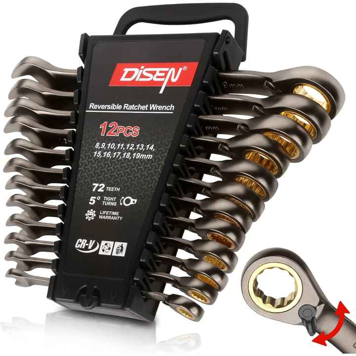 Disen 6ชิ้นพรีเมี่ยม CR-V เหล็ก SAE เมตริก72ชุดประแจฟัน12จุด10-15มม. และ3/8 ''-5/8'' ประแจปลายเปิดและกล่องประแจสำหรับ DIY