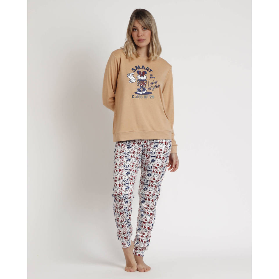 Disney ชุดนอนวิทยาลัย Manga Larga mujer ชุดนอนเอวยางยืดพร้อมผ้าสแปนเด็กซ์ระบายอากาศสไตล์พิมพ์ลายสีทึบฤดูใบไม้ร่วง