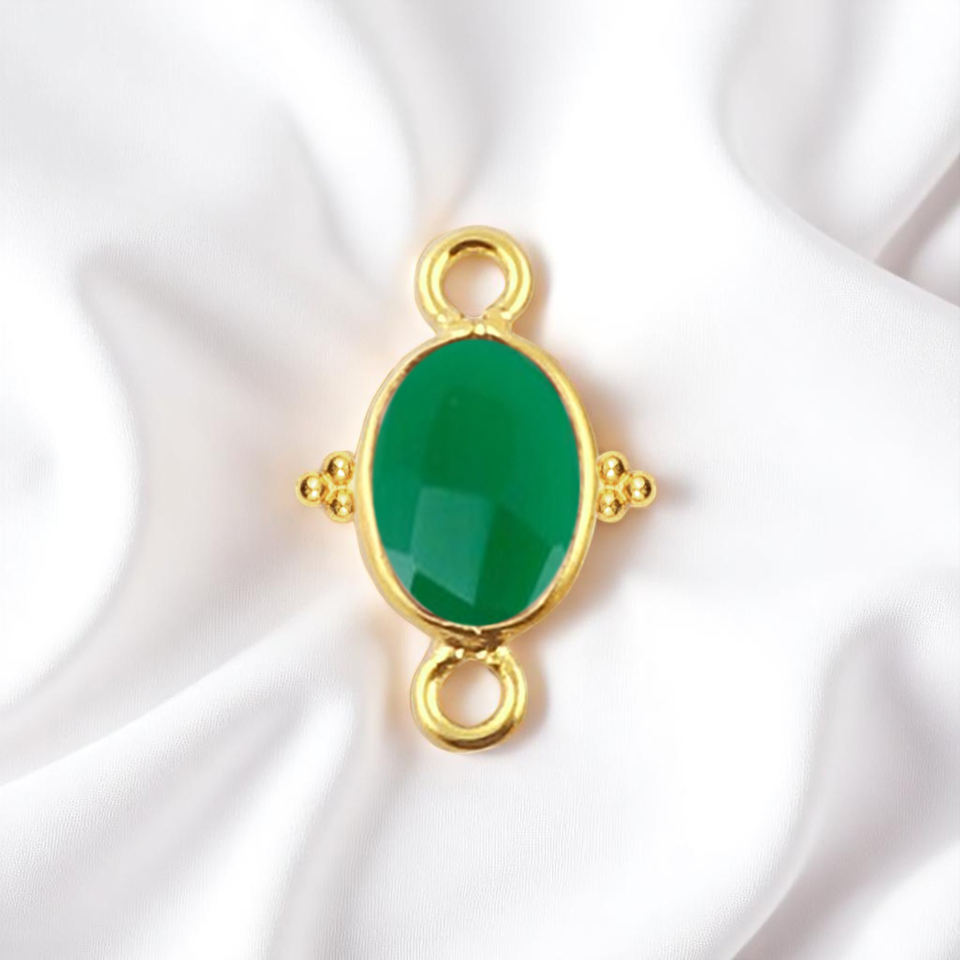 เครื่องประดับแบบ DIY 10x8มม. สีเขียวพลอยโอนิกซ์เป็นรูปวงรีแบบมีขอบเป็นเครื่องประดับตัวเชื่อมต่อแบบ925ประกันตัวคู่