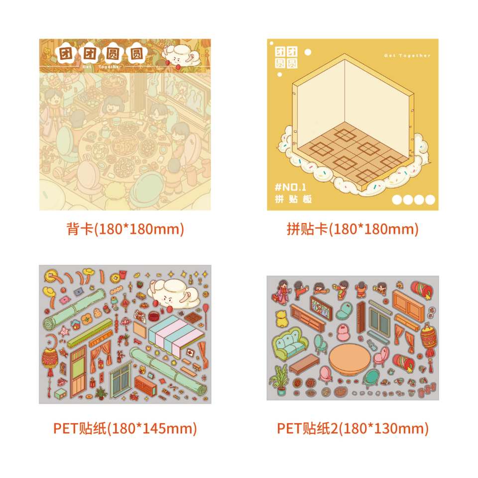 สติกเกอร์ติด3D รูปโลกขนาดเล็กแบบมีกาวในตัวสำหรับตกแต่งเทศกาลสติกเกอร์สร้างบรรยากาศสำหรับฉากในห้องที่ออกแบบในสไตล์อาคาร