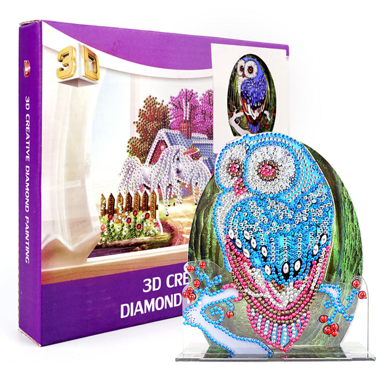 ภาพเพชร DIY 5 มิติ ภาพสามมิติ ปริศนาเพชรรูปทรงพิเศษ อะคริลิค รูปนกฮูก ภาพคริสตัล ตกแต่งบ้าน