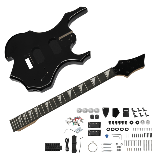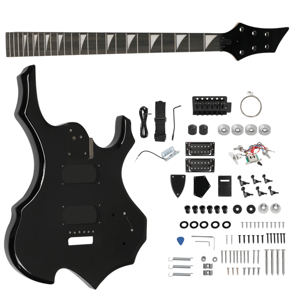 ชุดกีตาร์ไฟฟ้า HSH รูปเปลวไฟ6สายแบบทำมือส่วนคอเมเปิ้ลทำจากไม้มะฮอกกานี D0100XUFNZ7ชิ้นส่วน