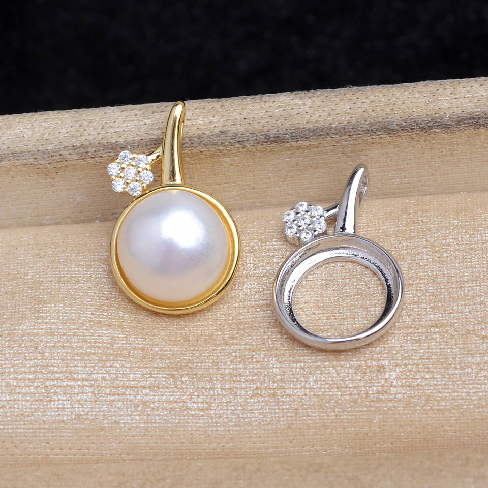 อุปกรณ์เสริม DIY ยี่ห้อ Wenchi จี้รูปแอปเปิ้ลเงินแท้ S925 ขนาด 9.8-10 มม. ตัวเรือนจี้เปล่าสำหรับไข่มุกมาเบะ เครื่องประดับมุกคุณภาพสูง รุ่น 13526