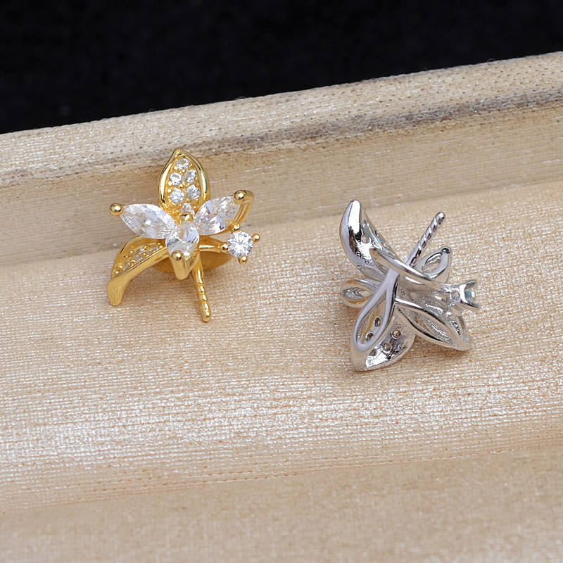 อุปกรณ์ DIY สำหรับเครื่องประดับมุก จี้ดอกไม้เงิน ตัวเรือนเปล่า 10-11 มม. แฟชั่น JG5943 ผลิตภัณฑ์กึ่งสำเร็จรูป ต่างหูแบบติดหู